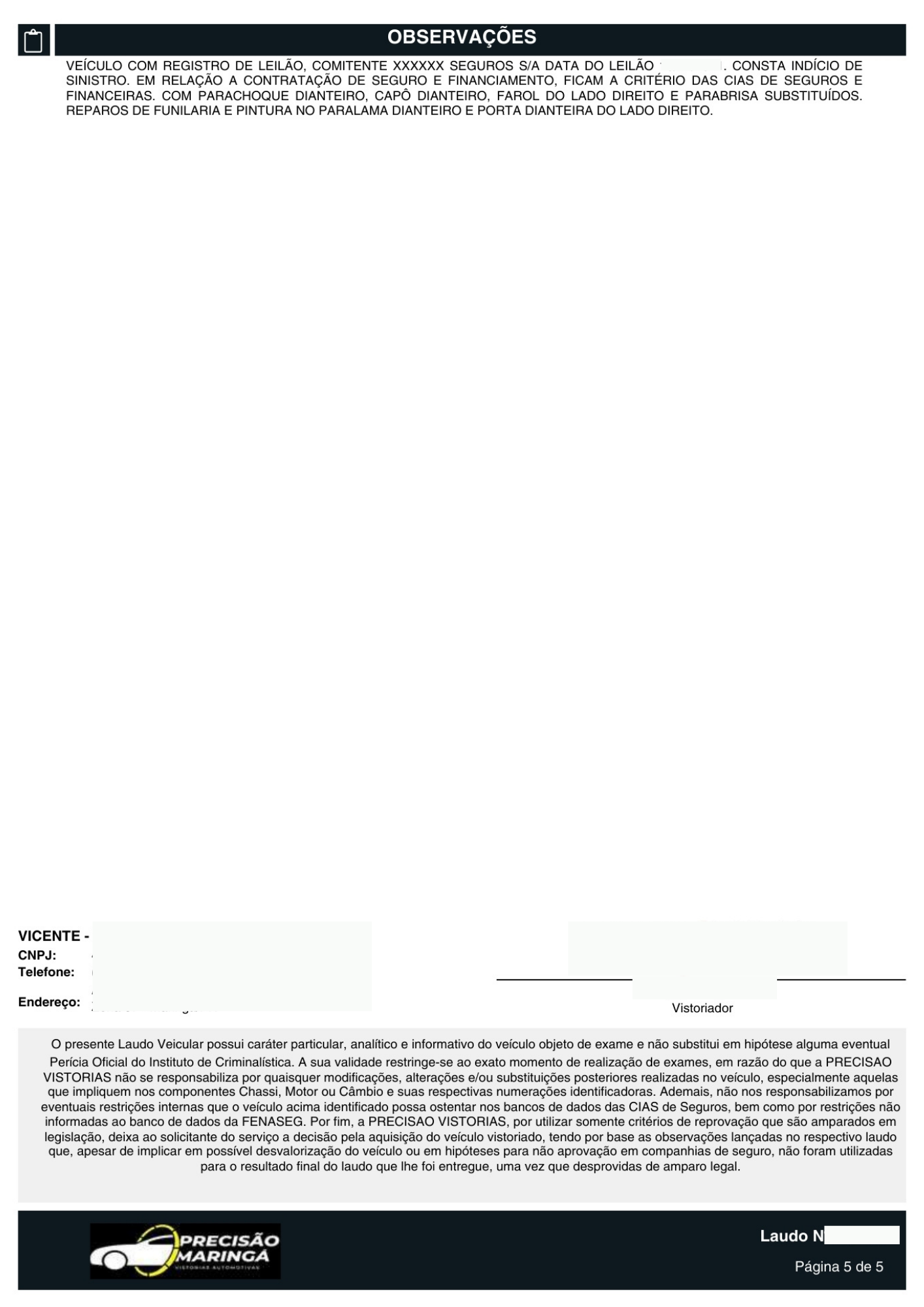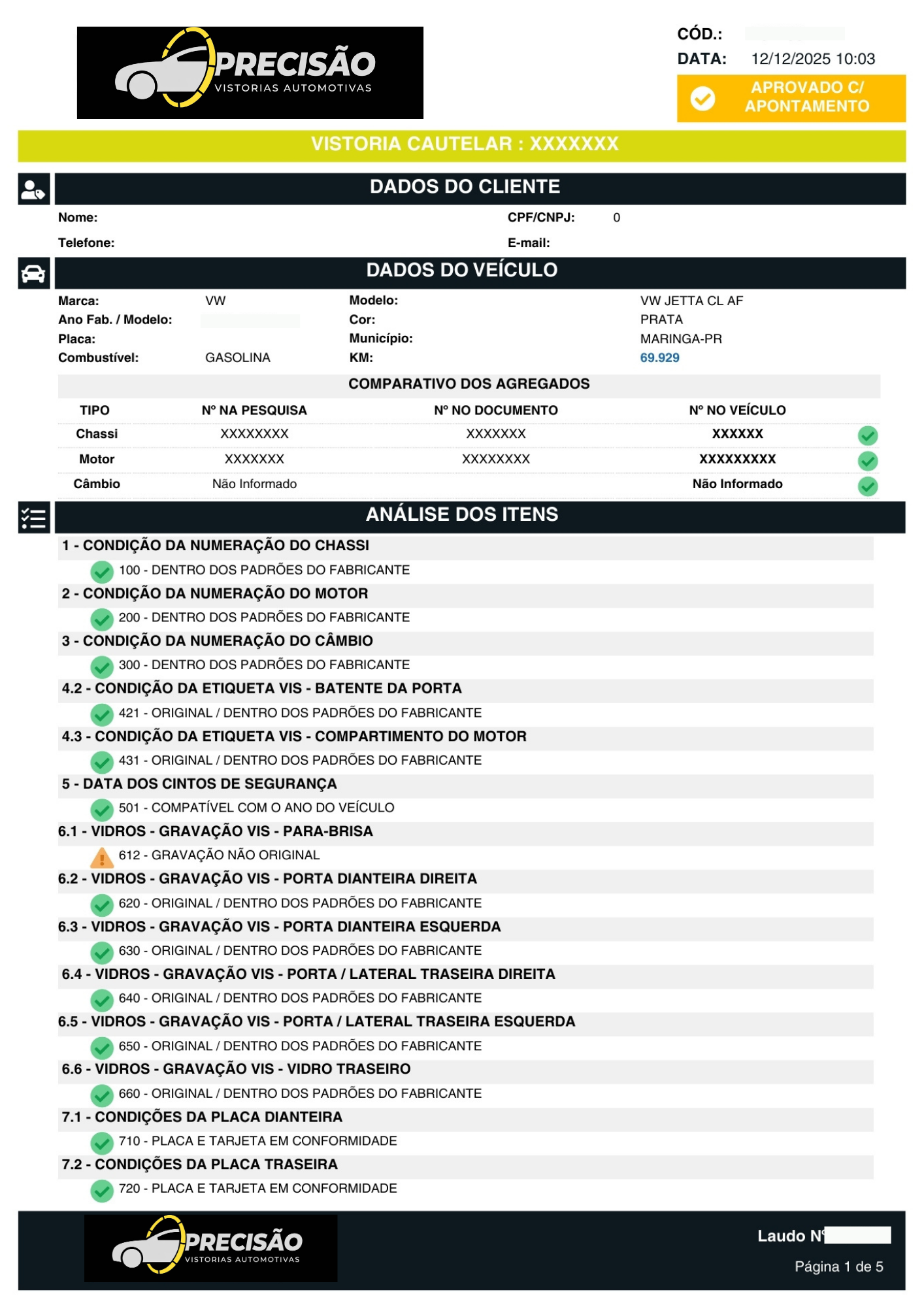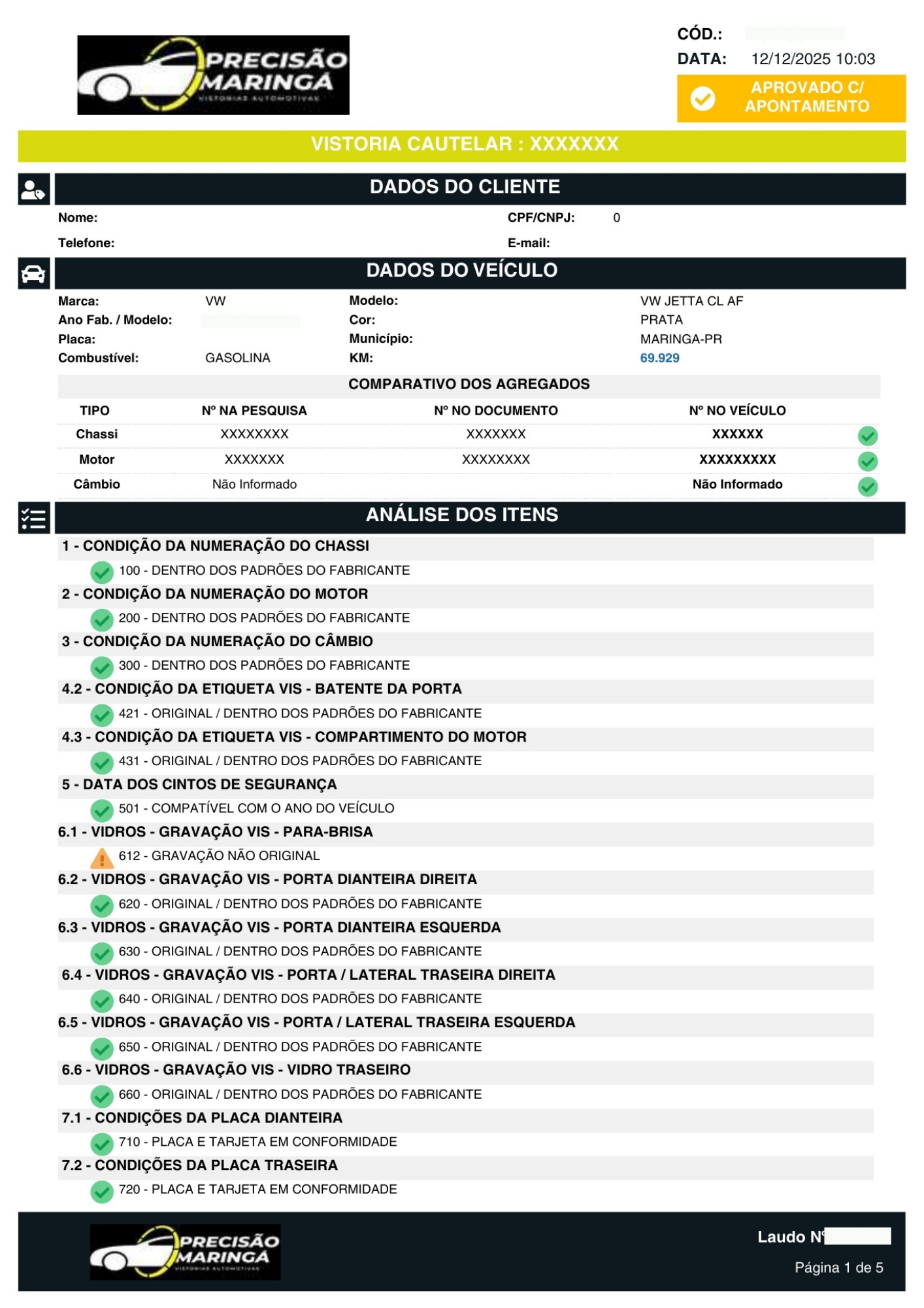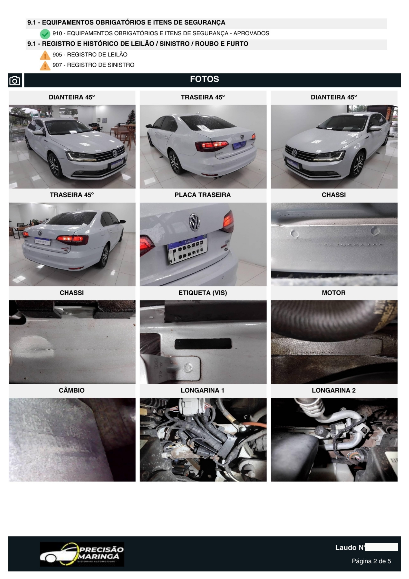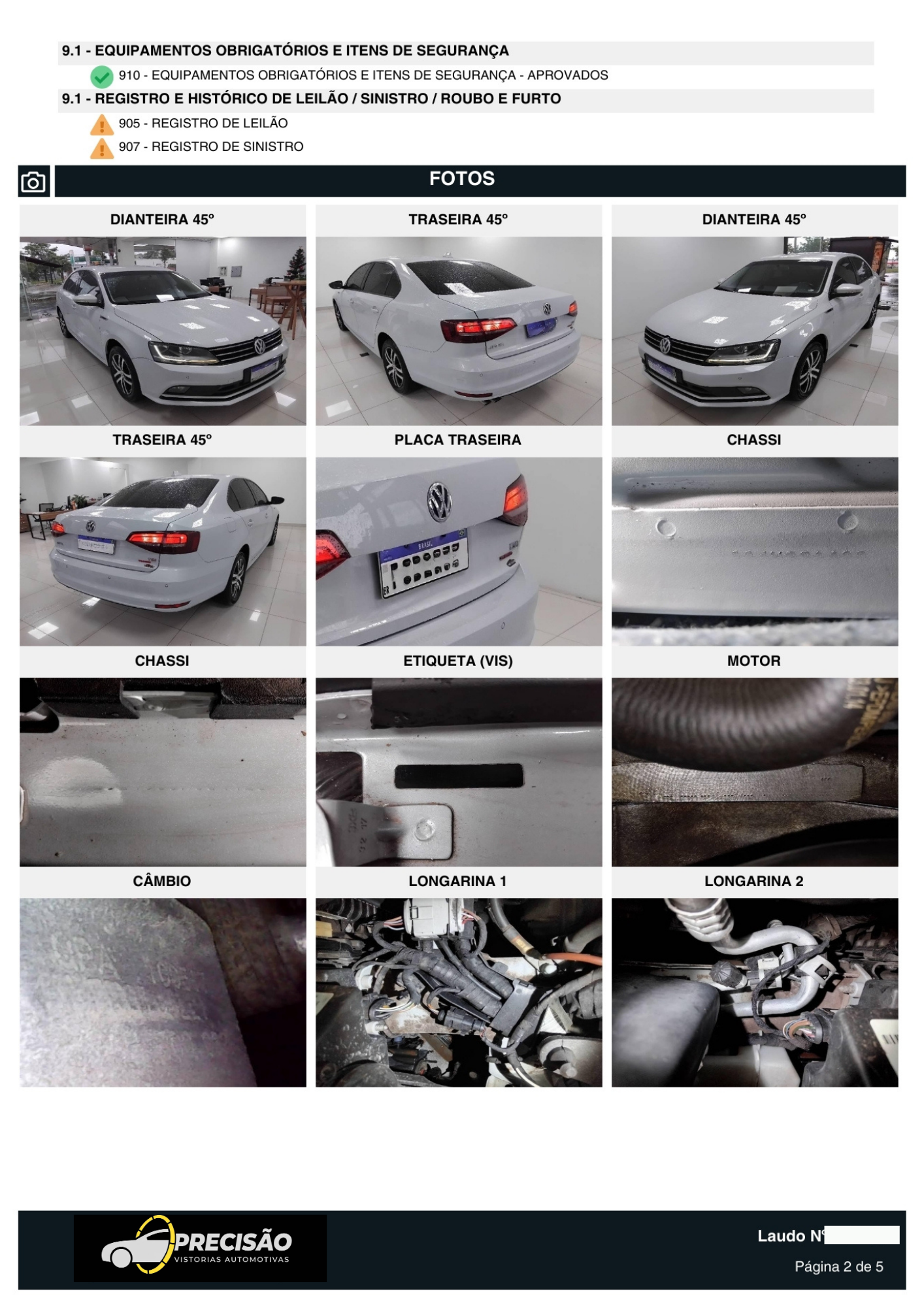 Você recebe o laudo técnico detalhado e pode seguir com a sua negociação com a total certeza da procedência do veículo.
