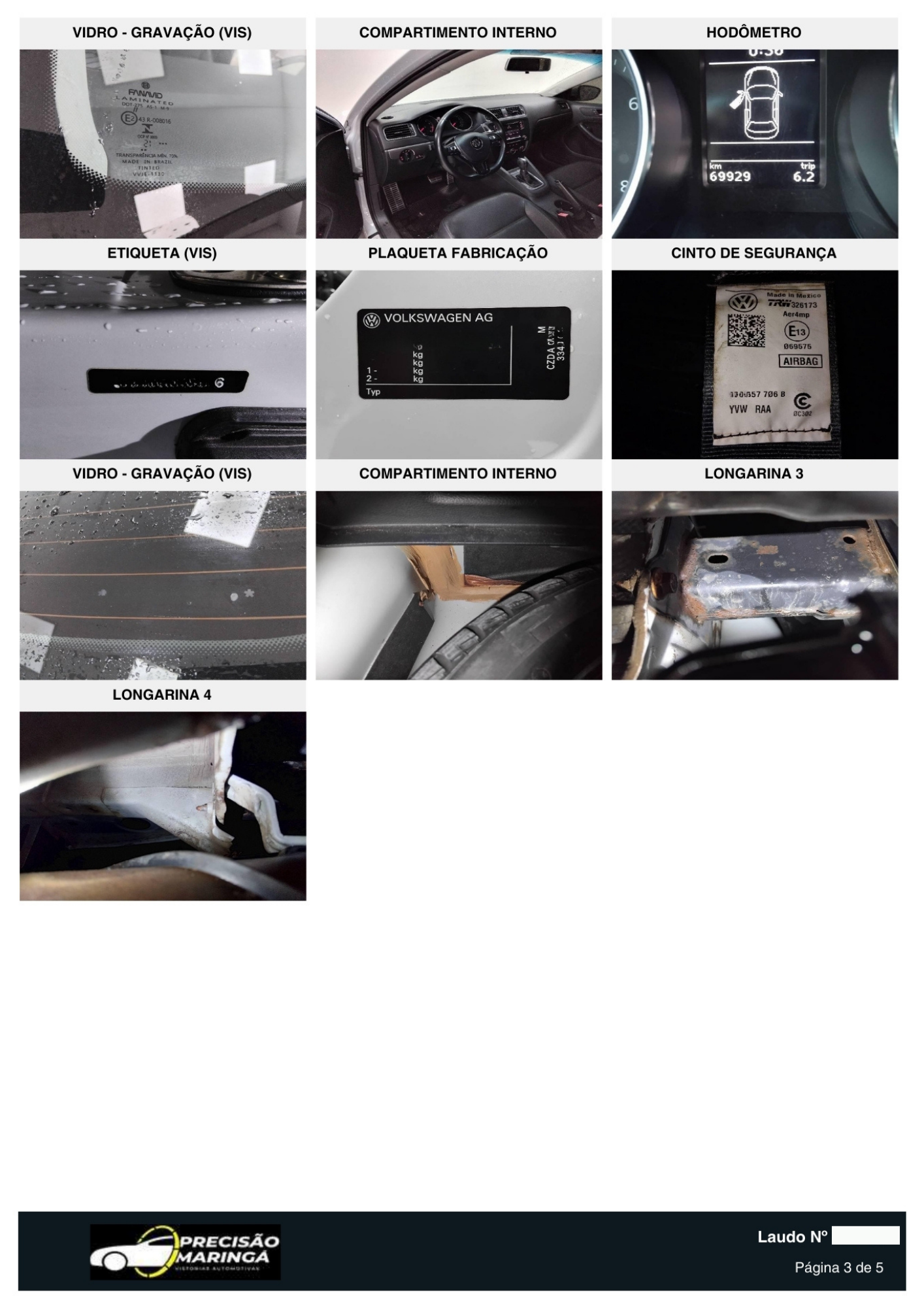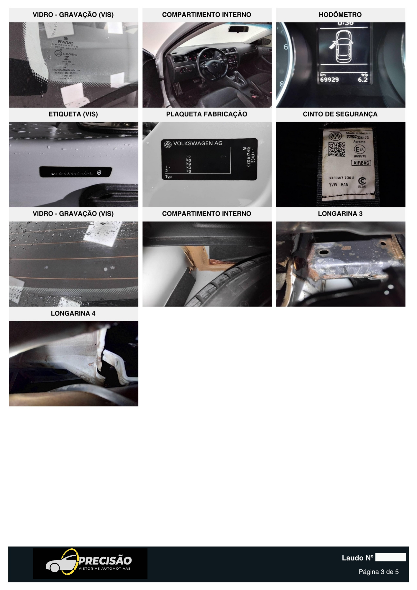 Condições das etiquetas (ETA) originais, cintos de segurança, gravações dos vidros, placas dianteira e traseira.