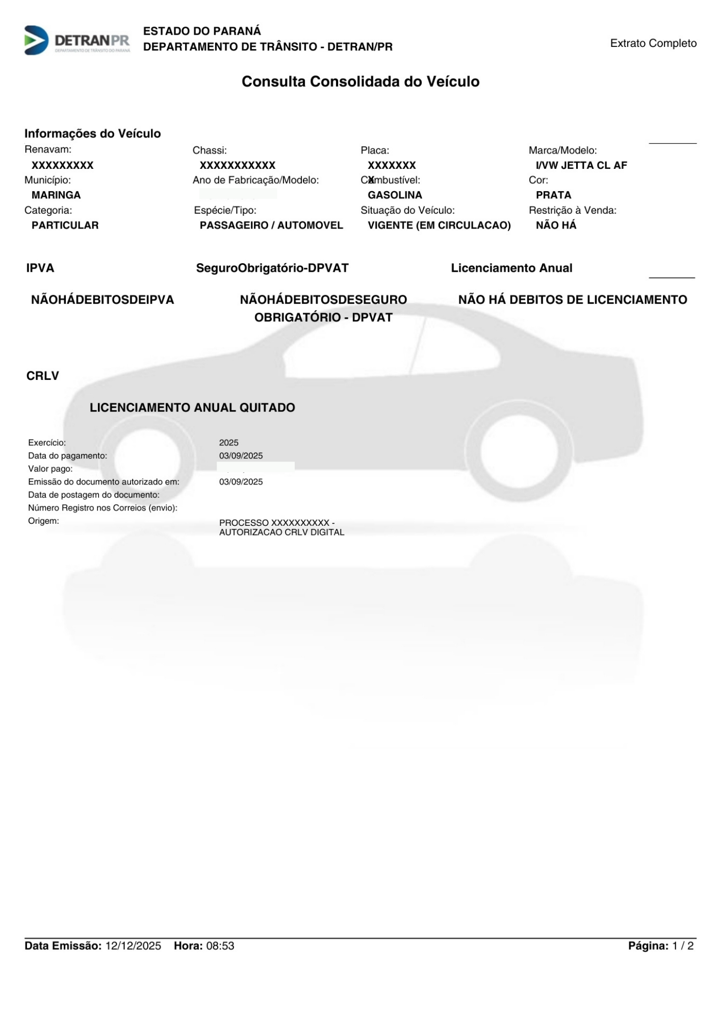 Checagem da autenticidade e conformidade do CRLV, garantindo a procedência legal do veículo.